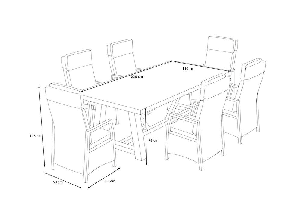 Mit der OUTFLEXX Nova Garten-Essgruppe schaffen Sie einen großzügigen Essplatz, an dem bis zu sechs Personen bequem Platz finden. Ob für ein ausgiebiges Familienessen, gesellige Abende mit Freunden oder entspannte Stunden im Freien – diese Gruppe bietet den idealen Rahmen. Dank ihrer robusten Verarbeitung und hochwertigen Materialien ist sie bestens für den Einsatz im Freien geeignet und erweist sich als pflegeleicht und langlebig.