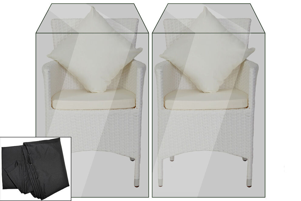 Dieses 2-teilige OUTFLEXX® Premium Abdeckhauben-Set in Schwarz besteht aus 100% Polyester mit einer Stärke von ca. 170g/m². Die Hauben sind mit einer PU-Beschichtung versehen, die sie wasserbeständig und uv-stabil macht. Damit schützen Sie Ihre wertvollen Polyrattan Stühle zuverlässig vor Staub und Verschmutzung. Die Schutzhüllen sind mit einem Kordelzug ausgestattet und lassen sich so fest verzurren.