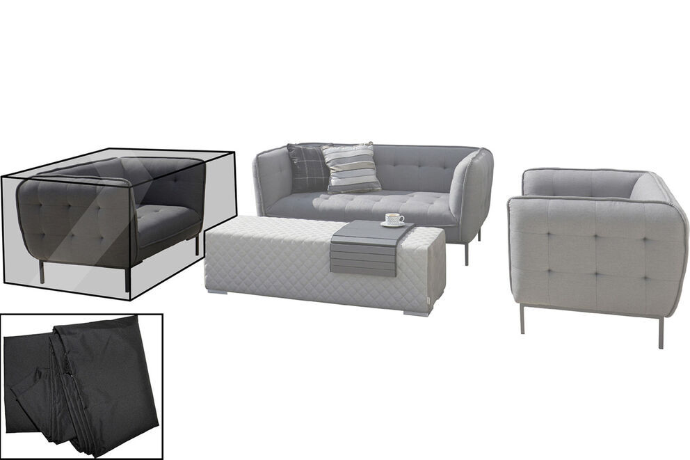 Diese Premium Abdeckhaube in Schwarz besteht aus 100% Polyester mit einer Stärke von ca. 170g/m². Sie ist mit einer PU-Beschichtung versehen, die sie wasserbeständig und uv-stabil macht. Die Nähte sind mit PU-Tape versiegelt und somit spritzwassergeschützt. Damit schützen Sie Ihre wertvollen Gartenmöbel zuverlässig vor Staub, Verschmutzung und Nässe. Die Schutzhülle ist mit einem stabilen Zugband versehen und lässt sich so fest verzurren. Dadurch können Sie Ihre Gartenmöbel besonders gut vor Witterungen wie Sonne, Regen, Sturm oder Schnee schützen.