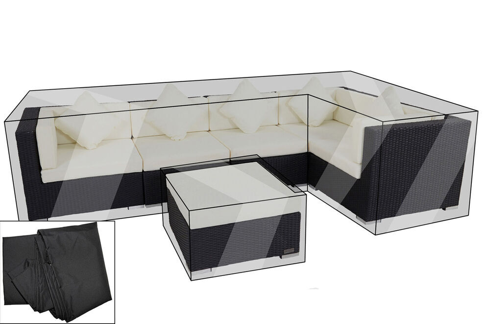 HINWEIS: Beachten Sie bitte, dass es sich bei den Fotos lediglich um eine exemplarische Darstellung handelt. Den Umfang sowie weitere Informationen entnehmen Sie bitte dieser Artikelbeschreibung.| ✔ | wasserbeständig Dieses OUTFLEXX® Premium Abdeckhauben-Set hält, was es verspricht und schützt Ihre wertvolle Loungegruppe, auch durch die spritzwassergeschützten Nähte, zuverlässig vor Staub, Schmutz, Sonne und Nässe.. |