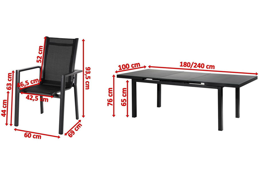 Bei dieser Premium Esstischgruppe treffen hochwertige Materialien und Design auf modernste Weise aufeinander. Das Set besteht aus einem innovativen Premium Ausziehtisch mit den Maßen von ca. 180/240 x 100 x 76 cm und 6 Stapelsesseln in der Farbe 'OUTFLEXX® Anthrazit Matt'.