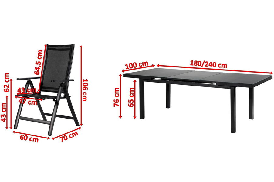 Die Klappstühle bestechen durch ihre schlichte Optik mit dem pulverbeschichteten Aluminiumrahmen in einem matten Anthrazit in Kombination mit dem schwarzen Textilen-Gewebe. Auch funktional überzeugen die bequemen Gartensessel: Die Rückenlehne lässt sich kinderleicht in 7 Stufen verstellen und bietet damit einen hervorragenden Sitzkomfort. Dank des pulverbeschichteten Aluminiumgestells sind die Sessel zudem leicht und einfach zu transportieren. Je nach Bedarf können die Hochlehner schnell und einfach zusammengeklappt und platzsparend verstaut werden.