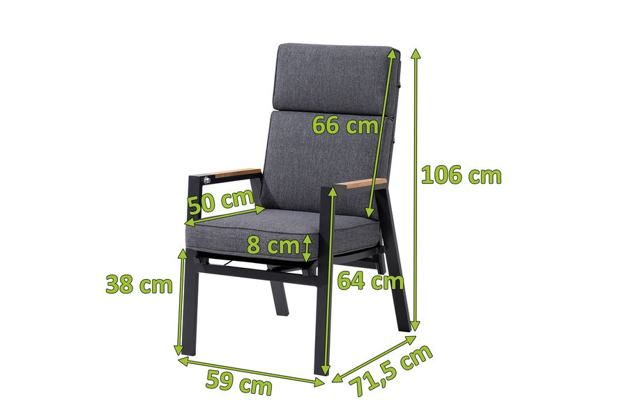 1x OUTFLEXX Stapelsessel, OUTFLEXX anthrazit matt, Alu/Polyester, ca. 71,5x59x106 cm , Teak Armlehnen