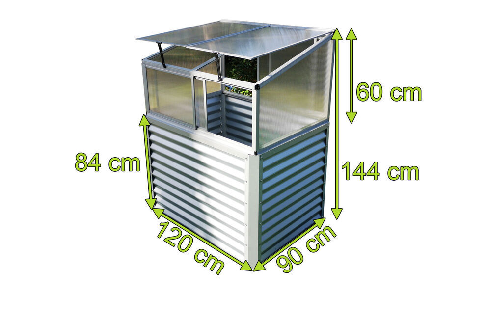 Der silberfarbene Hochbeetaufsatz aus pulverbeschichtetem Aluminium und 4 mm dicken Polycarbonat Hohlkammerplatten ist durch seine Materialien und deren hochwertiger Verarbeitung extrem witterungsbeständig, stabil und robust. Er hat die Maße von ca. 116 x 86 x 60 cm, ein Gewicht von ca. 9,5 kg und verfügt über zwei separat zu öffnende Dachfenster und insgesamt vier Schiebefenster vorne und hinten , welche einen einfachen und problemlosen Zugang zu Ihren Pflanzen ermöglichen und ausreichend Belüftungsmöglichkeiten für eine optimale Sauerstoffzufuhr bieten. Das Klima im Frühbeetaufsatz unterstützt bereits kurz nach Ende der winterlichen Witterung das Wachstum frischer Kräuter und Jungpflanzen ohne Düngerzugabe. Die Gartensaison wird mit dem Frühbeetaufsatz erweitert. Es sind bis zu 3 Ernten pro Jahr im eigenen Gemüse-/Obstgarten möglich.