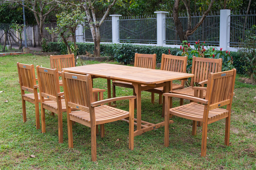 Das hochwertige Akazienholz für die Outflexx Esstischgarnitur hält nicht nur den strengen FSC-Zertifizierungsrichtlinien stand, sondern zeichnet sich außerdem durch seine extrem gute Witterungsbeständigkeit aus. Zudem besitzt Akazienholz eine besonders hohe Härte und Festigkeit - selbst Eichenholz kann da nicht mehr mithalten! Aufgrund der Vielzahl an positiven Eigenschaften ist die Outflexx Sitzgruppe perfekt für den Einsatz im Außenbereich geeignet. Das Akazienholz wurde zum Schutz vor Austrocknung und Witterungseinflüssen geölt. Um einen dauerhaften Schutz vor Verfall zu gewährleisten und zusätzlich die schöne Farbe der Holzmaserung zu erhalten, empfehlen wir Ihnen, die Holzoberfläche regelmäßig mit entsprechenden Pflegemitteln zu behandeln. Dafür ist spezielles Holzöl und Hartwachs bestens geeignet - mit diesem einfachen Trick werden Sie viele Jahre Freude an dem Outflexx Set haben. Dabei ist zu beachten, dass das Holz durch regelmäßiges ölen nachdunkeln kann.