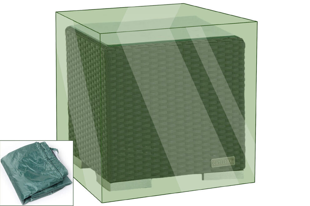 Die PU-beschichtete Abdeckhaube von OUTFLEXX® in Dunkelgrün besteht aus 100% Polyester und ist für alle Garten Beistelltische in der Größe von ca. 40 x 40 cm geeignet. Das integrierte Zugband dient zum Verzurren.
