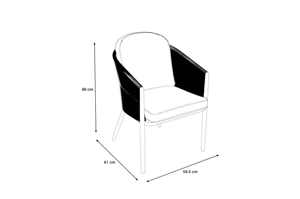 Das Gestell besteht aus pulverbeschichtetem Aluminium, das besonders leicht und gleichzeitig widerstandsfähig ist. Die Pulverbeschichtung schützt zuverlässig vor Feuchtigkeit und Sonneneinstrahlung und verleiht dem Möbelstück eine edle Optik. Die Sitz- und Rückenfläche ist mit hochwertigem Rope-Geflecht bespannt, das durch hohe Strapazierfähigkeit, UV-Beständigkeit und Formstabilität überzeugt. Dadurch entsteht ein angenehm weiches, stützendes Sitzgefühl, das Ihnen selbst bei längeren Abenden viel Komfort bietet.