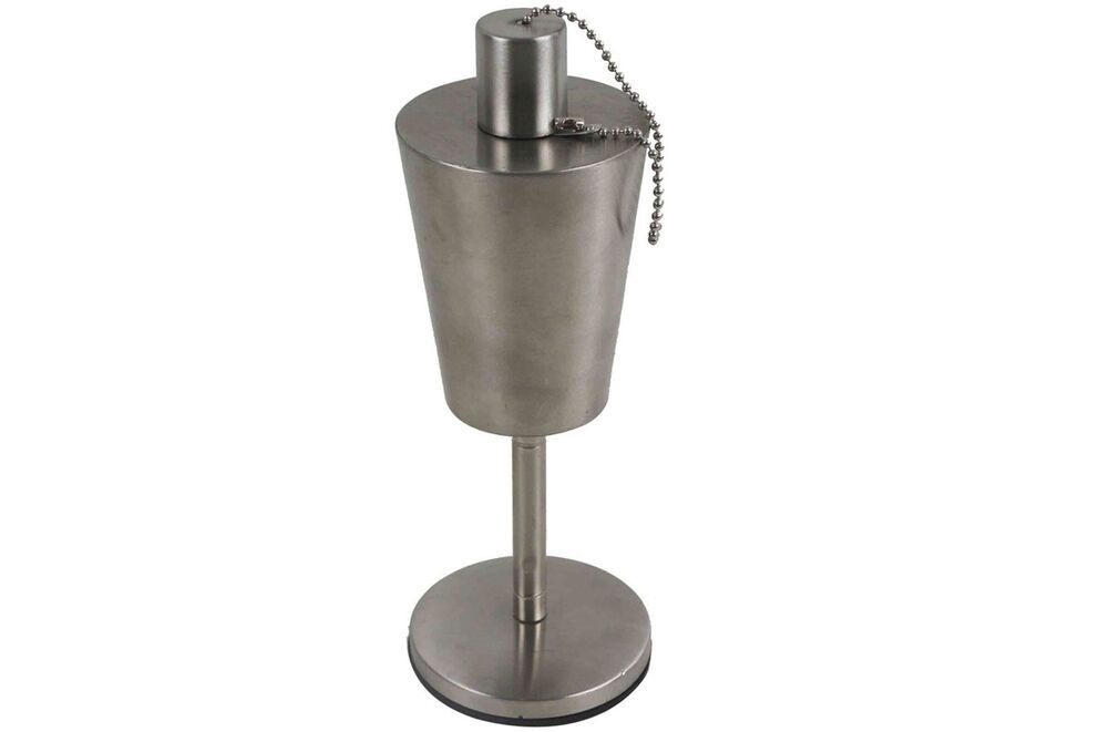 Der Glasfaserdocht ist geschützt durch einen Sicherheitskopf und verhindert so den Zugang für Kinder und das Auslaufen des Öls. Außerdem ist die Gartenfackel mit einer Löschglocke ausgestattet, die bei Bedarf einfach über den Docht gestülpt wird und somit ein ungefährliches Löschen gewährleistet. Mit einer Füllmenge von ca. 340 ml handelsüblichen Lampenöls brennt die Gartenfackel bis zu ca. 3 Stunden und ist dank des Edelstahls eine pflegeleichtere und wetterfestere Alternative zu Kerzen und Windlichtern.