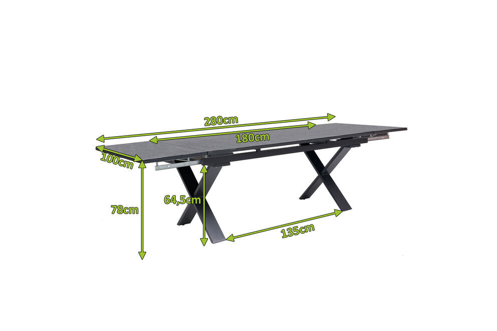 1x OUTFLEXX Toronto® Ausziehtisch in OUTFLEXX Toronto® anthrazit matt/anthrazit, ca. 180/280 x 100 x 78 cm