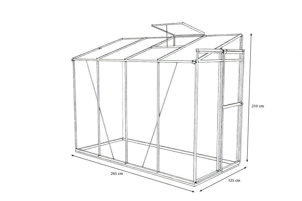 Das OUTFLEXX Verde Comfort Anlehn-Gewächshaus ist die ideale Lösung für alle Hobbygärtner, die ihren Pflanzen einen geschützten und lichtdurchfluteten Raum zum Wachsen und Gedeihen bieten möchten. Mit seinen großzügigen Maßen von ca. 265 x 125 x 210 cm bietet dieses hochwertige Anlehngewächshaus ausreichend Platz für Gemüse, Kräuter und Zierpflanzen und fügt sich dank seiner modernen Optik harmonisch an jede Haus- oder Garagenwand an.