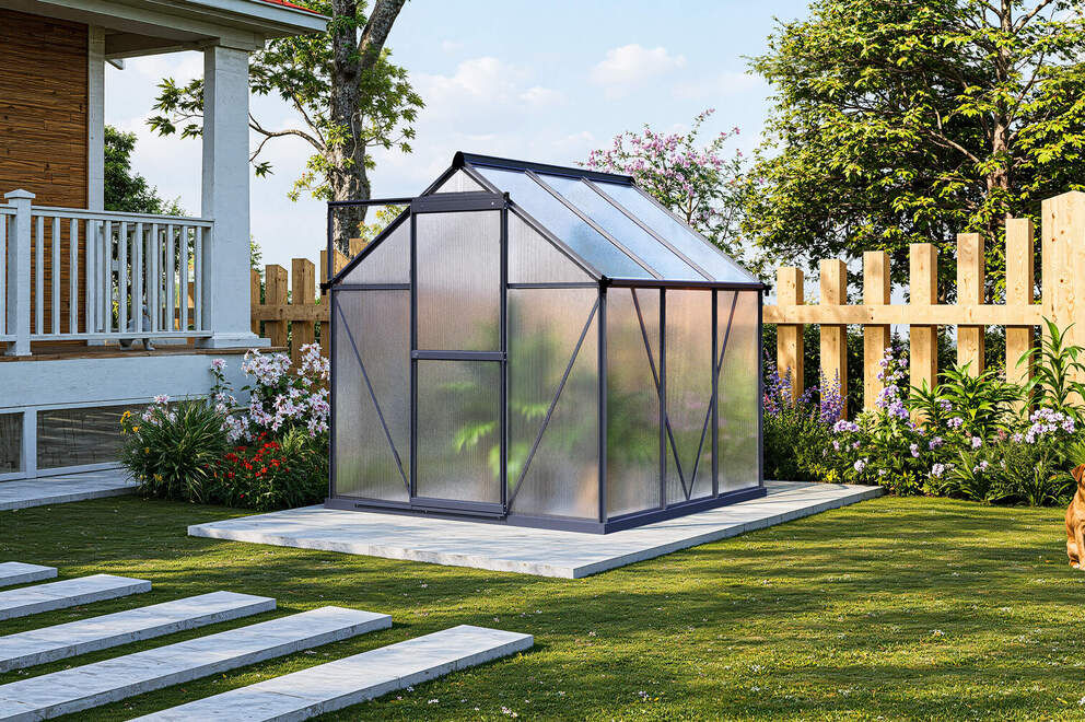 Dank der hochwertigen Aluminiumprofile und der wetterbeständigen Polycarbonatplatten ist das Gewächshaus optimal gegen Regen, Frost und intensive Sonneneinstrahlung geschützt. Die pulverbeschichtete Oberfläche sorgt für zusätzlichen Schutz und ermöglicht den Einsatz bei jeder Witterung – perfekt für das mitteleuropäische Klima. |