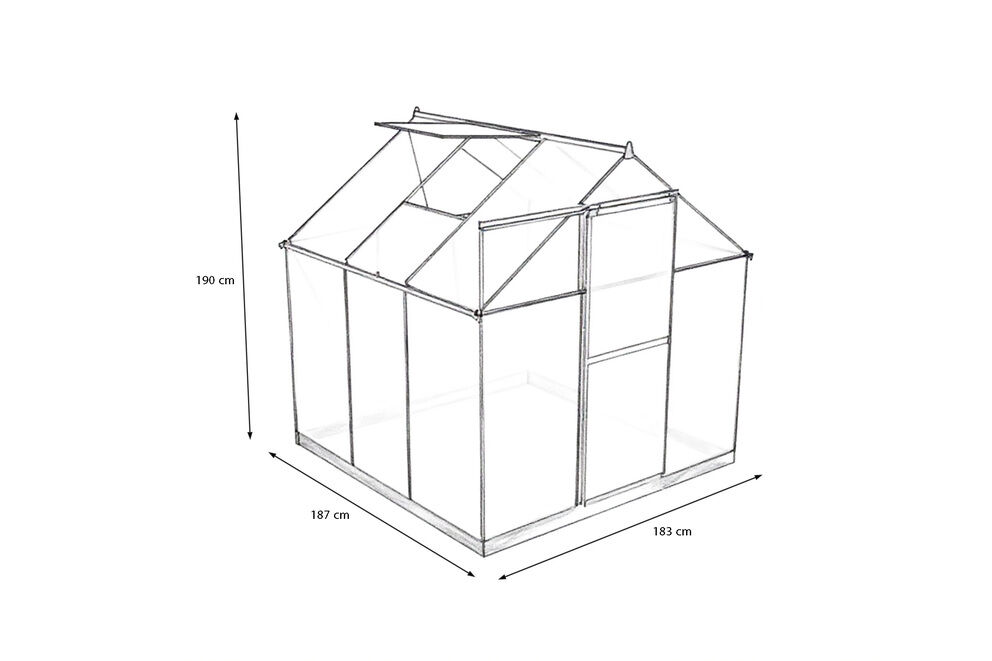 Das ca. 187 x 183 x 190 cm große Gewächshaus bietet mit einer Grundfläche von rund 3,4 m² ausreichend Platz, um Gemüse, Kräuter und Zierpflanzen zu kultivieren. Die stabile Aluminiumkonstruktion mit einer Profilstärke von ca. 1 mm sorgt für eine lange Lebensdauer und hohe Stabilität, auch bei Wind und Wetter. Die pulverbeschichtete Oberfläche in elegantem Schwarz schützt das Material zusätzlich vor Korrosion und verleiht dem Gewächshaus eine edle, moderne Optik, die sich harmonisch in jeden Garten einfügt.