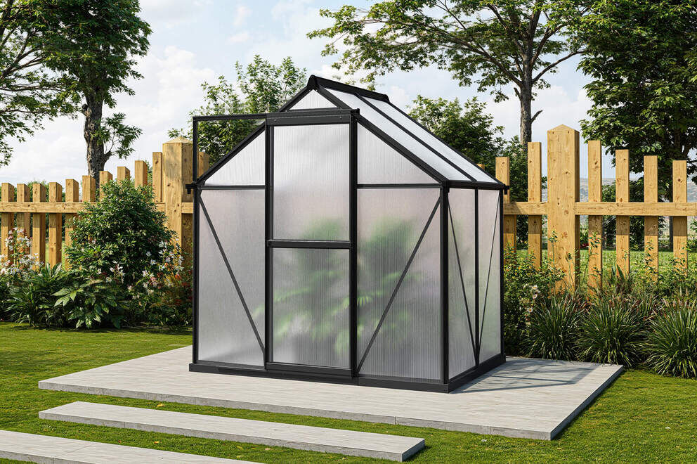 Das OUTFLEXX Gewächshaus Verde ist die ideale Lösung für alle Hobbygärtner, die Wert auf Qualität, Stabilität und Ästhetik legen. Mit seinem eleganten schwarzen Rahmen aus pulverbeschichtetem Aluminium und den hochwertigen Doppelstegplatten aus Polycarbonat bietet dieses Gewächshaus ein perfektes Zusammenspiel aus Funktionalität und modernem Design. Die großzügigen Maße von ca. 130 x 183 x 190 cm schaffen ausreichend Platz für den Anbau verschiedenster Pflanzen und ermöglichen zugleich ein angenehmes Arbeiten im Inneren.