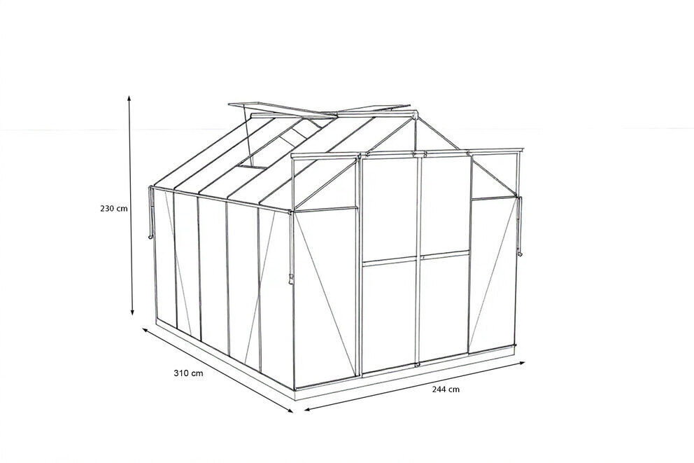 Zwei große Dachfenster sorgen für eine effiziente Luftzirkulation und ein angenehmes Klima im Inneren. So vermeiden Sie Hitzestau an sonnigen Tagen und schaffen perfekte Wachstumsbedingungen für Obst, Gemüse und Zierpflanzen. |