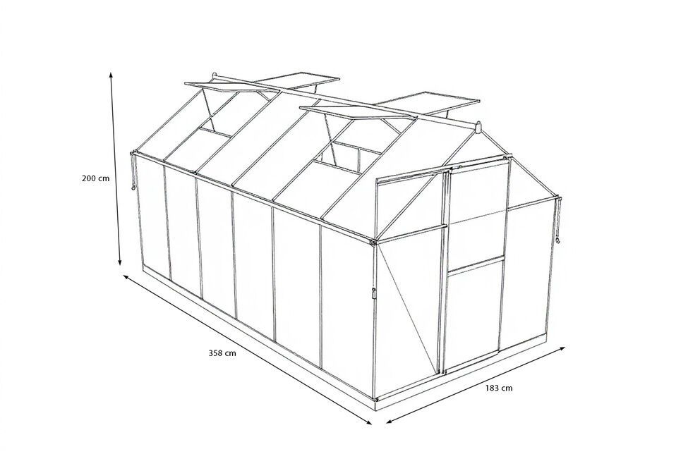 Mit einer Firsthöhe von ca. 200 cm und einer Seitenwandhöhe von ca. 158 cm bietet das Gewächshaus ein großzügiges Raumgefühl und erlaubt Ihnen aufrechtes Arbeiten im Inneren. Die Sockelhöhe von ca. 5 cm sorgt für eine solide Basis und trägt zur Stabilität bei. Trotz seiner Größe lässt sich das Modell dank der klar strukturierten Bauweise und der zerlegten Anlieferung zügig montieren.