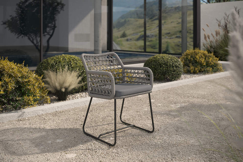 Voll im Trend mit Rope - Das hier verwendete Material Rope ist ein modernes Geflecht mit Kordeloptik. Schlicht und auffallend zugleich. Sie dachten, das ginge nicht? Dieser Sessel beweist das Gegenteil. Strapazierfähig, pflegeleicht und witterungsbeständig ist Rope ebenfalls, so dass dieser Sessel problemlos das ganze Jahr über im Freien stehen kann.