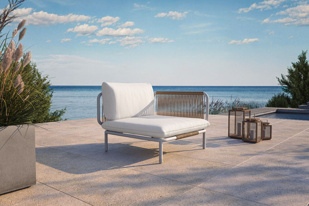 Das Gestell des Loungesofas besteht aus elektrophoretisch beschichtetem Stahl und Aluminium, wodurch es nicht nur besonders stabil, sondern auch korrosionsbeständig ist. Die Pulverbeschichtung sorgt für einen zusätzlichen Schutz gegen Witterungseinflüsse und verleiht dem Möbelstück eine elegante Optik. Die Armlehnen in Outflexx Weiß ergänzen das Gesamtbild perfekt und tragen zu einem harmonischen Erscheinungsbild bei.