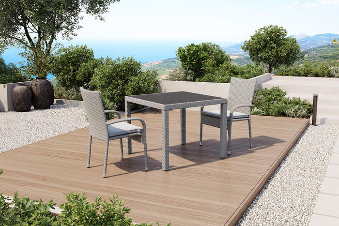 Die natürliche Optik und die klare Formensprache fügen sich harmonisch in jeden Außenbereich ein und werten Ihre Terrasse stilvoll auf. |