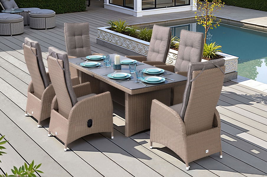 Hinter Polyrattan steckt ein künstlich hergestelltes Flechtmaterial aus Polyethylen (PE-Kunststoff), welches auf Grund der verwendeten Materialen UV-beständig, elastisch und witterungsbeständig ist. Dazu ist das Material besonders pflegeleicht und lässt sich äußerst einfach und schnell reinigen bzw. pflegen. Es genügt, die Möbel in regelmäßigen Abständen mit einem feuchten Tuch abzuwischen und bei Bedarf mit dem Wasserschlauch zu säubern. Lediglich bei hellen Möbelstücken empfiehlt sich die Verwendung von Kunststoffreiniger. Ähnlich dem ursprünglichen Rattan, welches auf pflanzlicher Basis hergestellt, schon seit Jahrhunderten im Möbelbereich eingesetzt wird, hat die optische Flechtstruktur einen besonderen Wiedererkennungswert und bildet so mühelos ein Highlight in Ihrem Außenbereich.