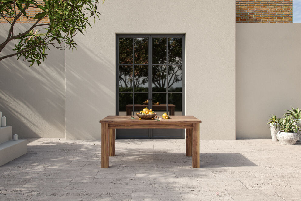 Gefertigt aus FSC-zertifiziertem Akazienholz, überzeugt dieser Tisch mit einer edlen Teakoptik und einem zeitlosen Design. Die hochwertige Verarbeitung und das gebürstete, geölte Finish verleihen dem Tisch eine angenehme Haptik und sorgen für eine edle Optik, die sich perfekt in moderne wie klassische Gartenlandschaften einfügt.