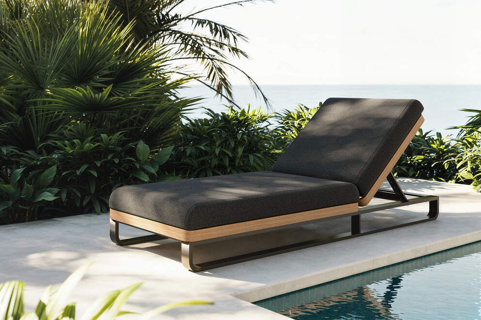 Der stabile, pulverbeschichtete Aluminiumrahmen in Anthrazit harmoniert perfekt mit den stilvollen Holzdekor-Applikationen und den edlen Polstern in Schwarz. Diese Materialkombination sorgt nicht nur für eine hochwertige Optik, sondern auch für Stabilität und Langlebigkeit. Der wetterbeständige Korpus ist pflegeleicht, während die bequemen Auflagen aus strapazierfähigem Polyester mit Schaumstoffkern ein besonders angenehmes Liegegefühl bieten.