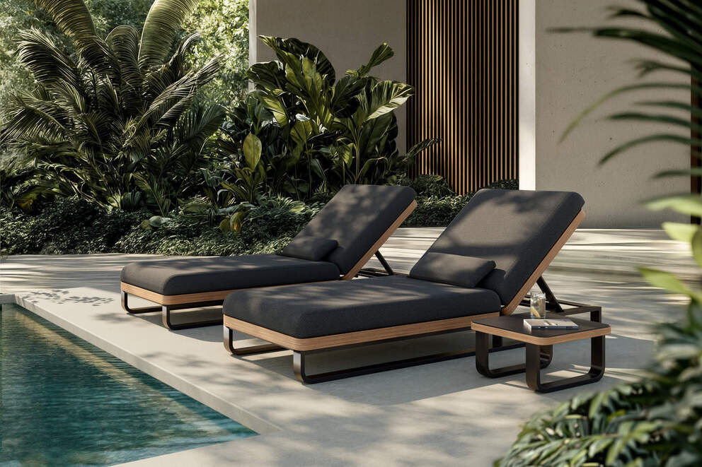 Die Liegen überzeugen durch ihre klare Formensprache und die harmonische Kombination aus einem pulverbeschichteten Aluminiumrahmen in edlem Anthrazit mit Holzoptik-Elementen. Dieses Zusammenspiel verleiht den Gartenliegen nicht nur eine zeitlose, moderne Optik, sondern sorgt auch für hohe Stabilität und Langlebigkeit. Dank der hochwertigen Materialien sind die Möbel robust, wetterbeständig und pflegeleicht – perfekt für den ganzjährigen Einsatz im Outdoor-Bereich.