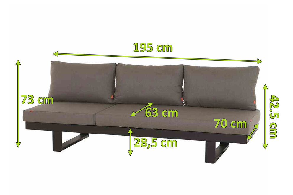 Lassen Sie den Alltag hinter sich: Mit Maßen von ca. 73 x 195 x 70 cm bietet die Bank eine Sitzbreite von ca. 194,7 cm. Bis zu 3 Personen finden bequem auf ihr Platz. Mit einer Sitzhöhe von ca. 28,5 cm lässt es sich gemütlich entspannen. Ein herrlicher Rückzugsort, um den Tag gemeinsam ausklingen zu lassen! Die hochwertige Verarbeitung macht die Bank strapazierfähig und robust, mit einem Gewicht von ca. 28,5 kg ist sie auch sehr stabil und wertig. Die mitgelieferten Sitz- und Rückenkissen in der Farbe taupe-meliert bestehen zu 100% aus Polypropylen, dieses Material ist sehr wetterfest. Die Rückenlehne ist umklappbar, somit können Sie Die Bank auch als Liege verwenden. Die Produkte der Marke bestechen vor allem durch ansprechendes Design, Robustheit der Materialien und Pflegeleichtigkeit - sie sorgen für ein absolutes Wohlfühlambiente in Ihrem Garten. Die Qualität wird Sie begeistern und Sie werden sich viele Jahre daran erfreuen.