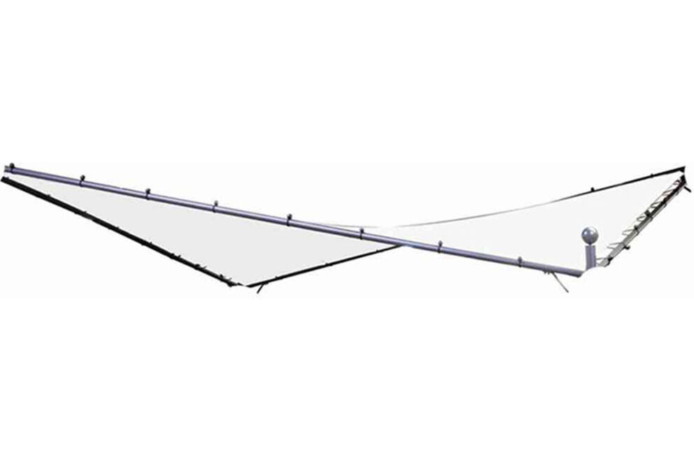 Futuristisches Design. Statt einen neuen Pavillon zu kaufen, können Sie den Berlino Pavillon ganz einfach mit einem neuen Dach ausstatten. Der Bezug ist aus weißem hochwertigem 100% Polyester (250 g/m²) und PU beschichtet. Damit ist der Berlino Pavillon nicht nur ein innovativ designter Pavillon, sondern trägt auch zur Nachhaltigkeit bei, da bei einer langfristigen Abnutzung einzelne Teile ersetzt werden können. Das Ersatzdach mit Maßen von ca. 400 x 400 cm wiegt ca. 5kg und kommt ohne Stahlgestell daher.