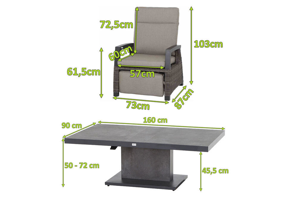 6x SIENA GARDEN Corido Relax Loungesessel, charcoal grey