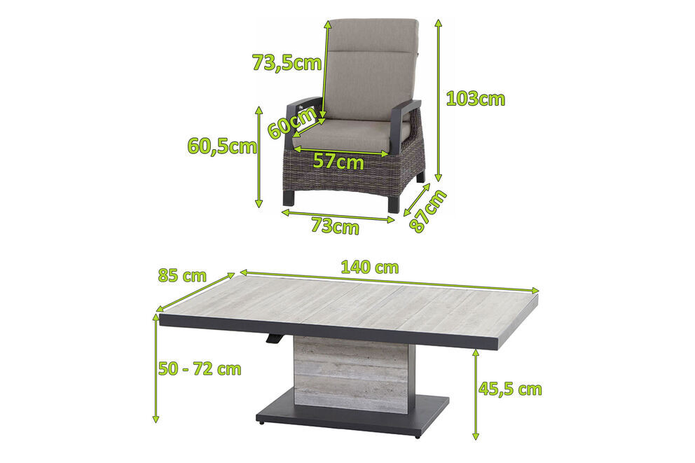 1x SIENA GARDEN Bellani Lifttisch, matt anthrazit/pine grey, Alu/Keramik, ca. 140x85x50-72 cm, stufenlos verstellbar