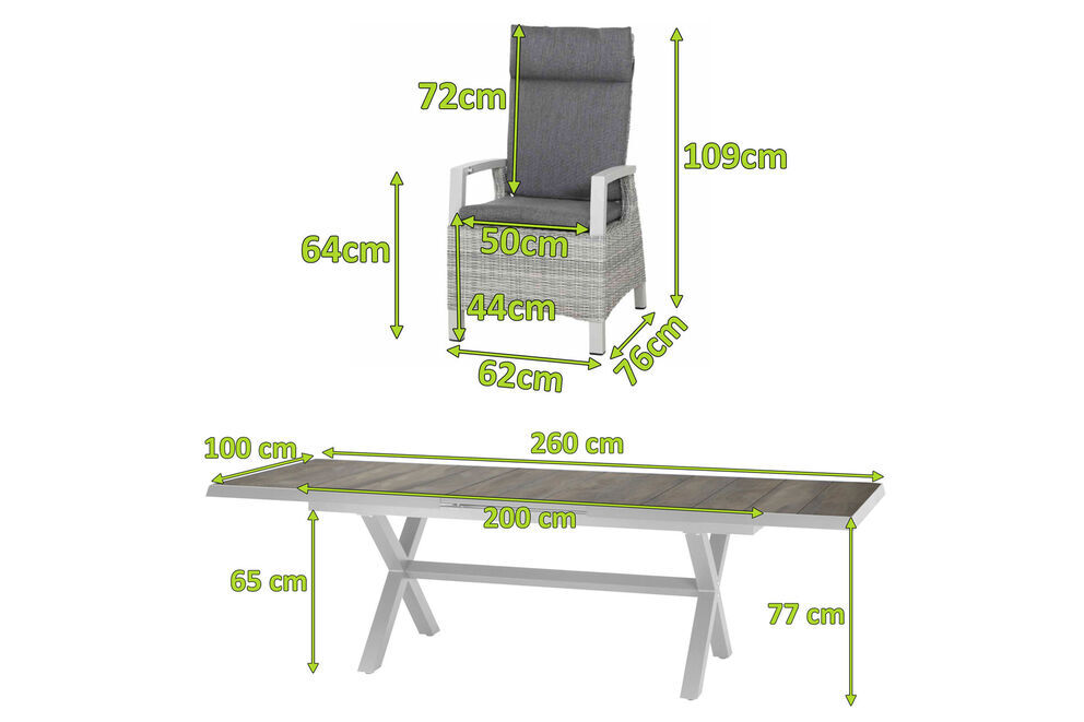 | ✔ | Inklusive Sitz- und Rückenkissen Die im Lieferumfang enthaltenen Sitzpolster aus 100% Polypropylen (280 g/m²) in der Farbe stone grey sorgen für optimalen Sitzkomfort. |