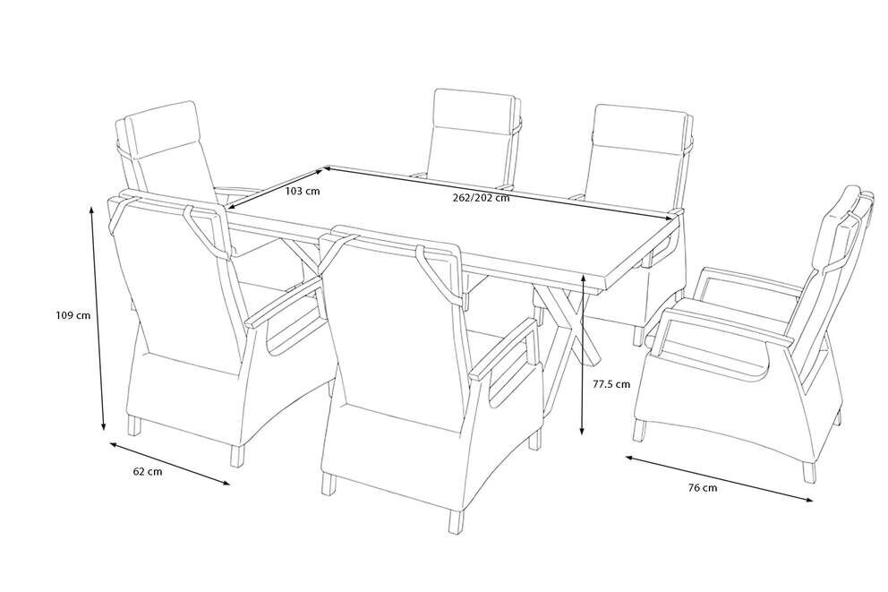 Ob moderne Architektur oder klassischer Gartenstil – die SIENA GARDEN Garten-Essgruppe fügt sich harmonisch in verschiedenste Umgebungen ein und verleiht Ihrem Außenbereich exklusiven Charakter. Dank der robusten Materialien, der durchdachten Funktionen und der großzügigen Abmessungen ist dieses Set die ideale Wahl für alle, die Wert auf Komfort, Eleganz und Beständigkeit legen.