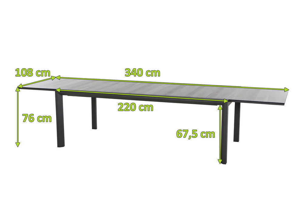1x SIENA GARDEN Kingston Ausziehtisch, matt graphit/woodlook, Alu/Keramik/Glas, 220/340x108 cm (H48011)