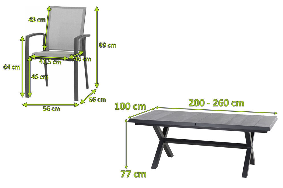 Wer das Besondere liebt ist mit diesem Esstisch bestens bedient. Der Tisch bietet mit seinen Maßen von ca. 200/260 x 100 x 77 cm Platz für ca. 8-10 Personen - so steht dem gemütlichen Mittagessen mit der Familie nichts mehr im Wege. Das Gestell wurde aus pulverbeschichtetem Aluminium hergestellt, was den Tisch besonders haltbar macht. Die Tischplatte besteht aus hochwertigem Keramik, während die Tischbeine für ein weiteres optisches Highlight sorgen. Durch die großzügige Unterschubhöhe kann man gemütlich mit vielen Arten von Sesseln an diesem Tisch Platz nehmen. Der Tisch ist durch das Eigengewicht von ca. 88 kg perfekt gegen Windstöße geschützt. Die Fußkappen bestehen aus Kunststoff und schützen den Boden vor unschönen Kratzern beim Verrücken des Möbelstücks.