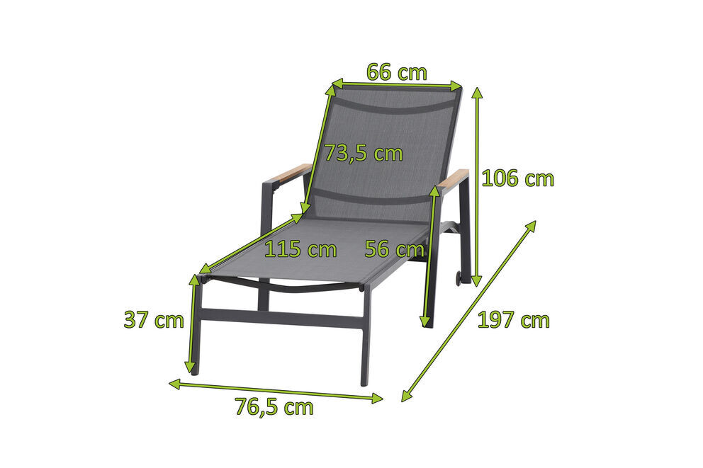 1x SIENA GARDEN Savona Liege, anthrazit matt, Alu/Ranotex, 197x76,5x106 cm, mit Teak-Armlehnen, verstellbar (M29405)