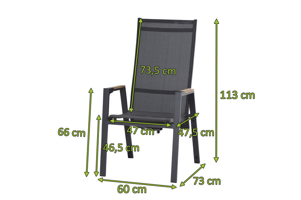 1x SIENA GARDEN Savona Move Sessel, anthrazit matt, Alu/Ranotex, 73x60x113 cm, mit Teak-Armlehnen, verstellbar (M29408)