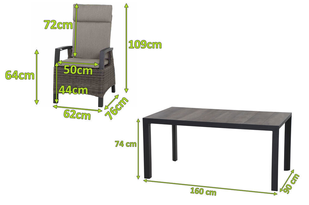 Gönnen Sie sich ein wenig Luxus in Ihrem Alltag und verbringen Sie in gepflegter Atmosphäre den Tag auf Ihrer Terrasse: bei einem leckeren Frühstück, bei einem genüsslichen Brunch oder lassen Sie bei einem Abendessen den Tag in geselliger Runde ausklingen. Dieser bequeme Dining Sessel lädt Sie und Ihre Gäste jederzeit zum Zurücklehnen und Verweilen ein. Stellen Sie die Rückenlehne des Anpassungskünstlers ganz einfach über einen Knopf in der Armlehne stufenlos ein. Die verbesserte Movetechnik sorgt für eine sanft laufende Rückenlehne, die müheloses Entspannen ermöglicht. Der Sessel hat ein Gesamtmaß von ca. 76 x 62 x 109 cm. Die ca. 50 cm breite Sitzfläche bietet genügend Platz. Mit einer großzügigen Sitztiefe von ca. 48 cm und bei einer Sitzhöhe von ca. 44 cm lässt es sich hier auch herrlich bei einem Nickerchen entschleunigen. Die praktischen Armlehnen aus Aluminium in einer Höhe von ca. 64 cm bieten zusätzlichen Komfort und sind echte Hingucker. Passende Sitzpolster in der Trendfarbe taupe meliert verleihen dem Sitzmöbel ein unvergleichliches Sitzerlebnis.