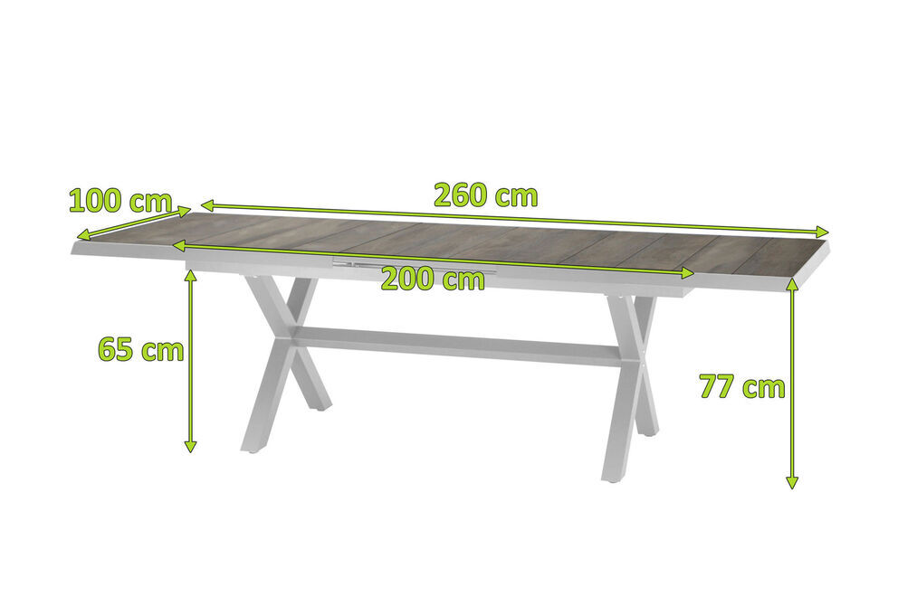 1x SIENA GARDEN Sincro Ausziehtisch, matt weiß-grau/washed grey, Alu/Keramik, 200/260x100 cm, synchroner Auszugsmechanismus (H48017)