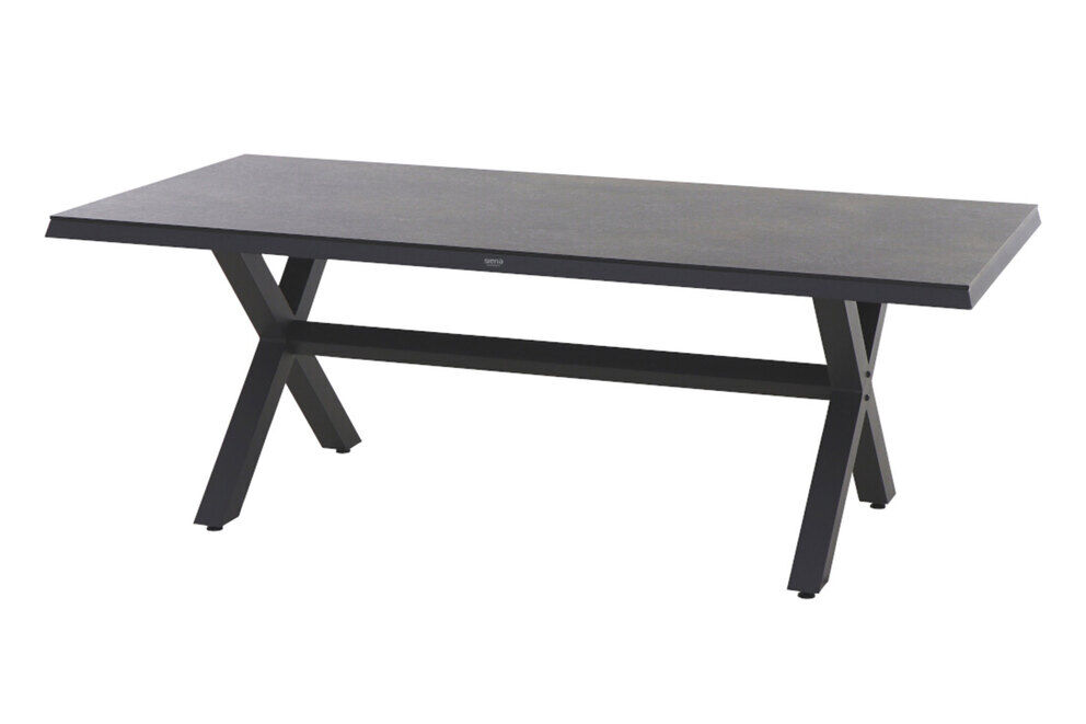 Mit seinem markanten X-Gestell in Matt Anthrazit und der rechteckigen Tischplatte in Titan-Optik wird der Tisch zum stilvollen Mittelpunkt Ihres Outdoor-Bereichs. Die Kombination aus pulverbeschichtetem Aluminium und einer 10 mm starken HPL-Tischplatte (High Pressure Laminate) sorgt nicht nur für eine moderne Optik, sondern auch für hohe Widerstandsfähigkeit gegen Wettereinflüsse.