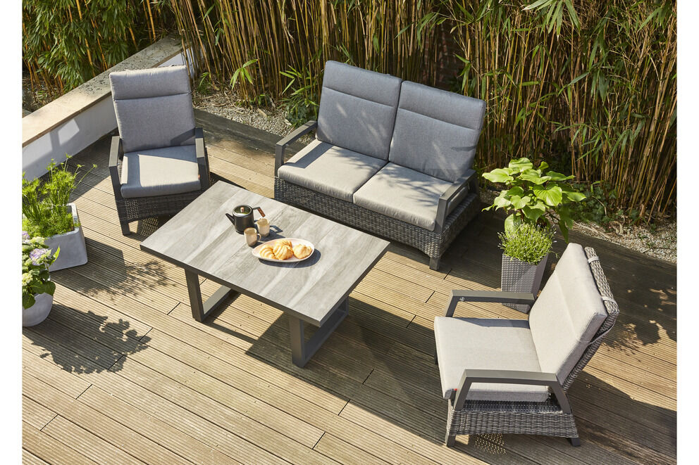 Die Rückenlehnen der Loungegarnitur sind stufenlos verstellbar, für Ihren individuellen Sitzkomfort. |