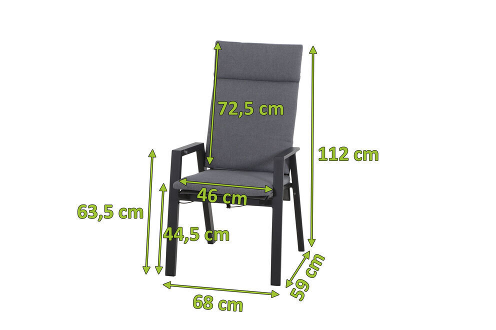 SIENA GARDEN Valencia Dining Sessel, anthrazit/grau, Aluminium, 68 x 60 x 112 cm, stufenlos verstellbar