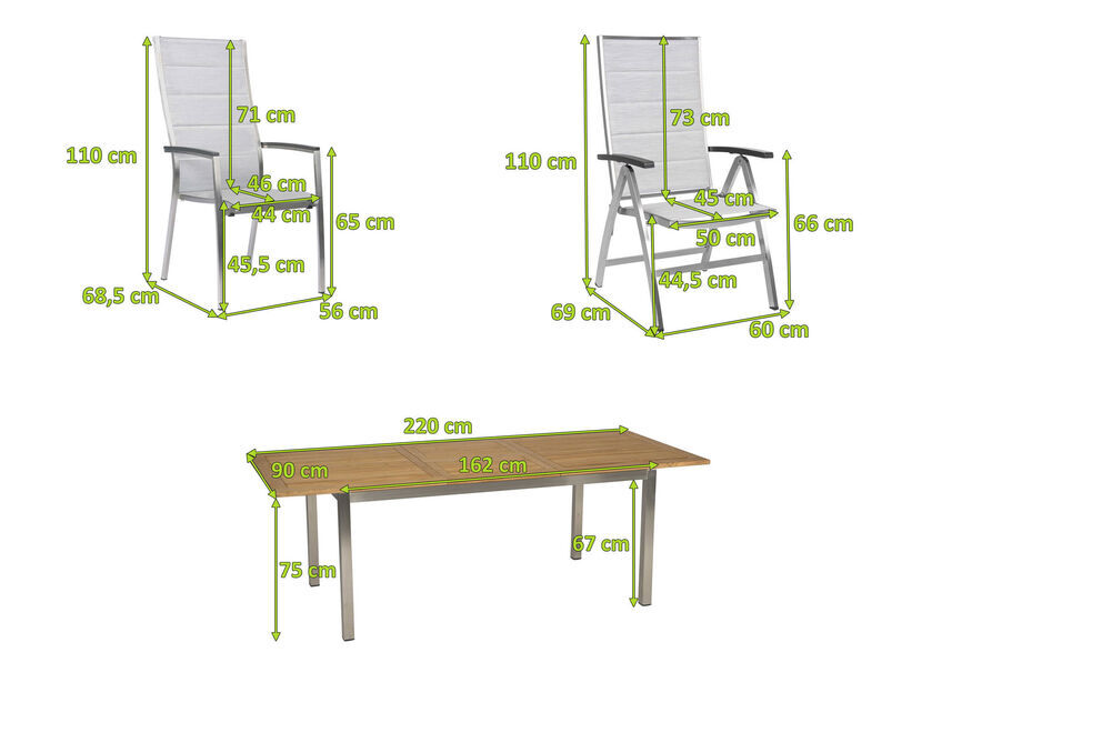 Diese Garnitur wird Ihnen aufgrund der strapazierfähigen Materialien und der hochwertigen Verarbeitung ein langlebiger Begleiter im Garten sein, der Ihnen viele Sommer Freude bereiten wird.