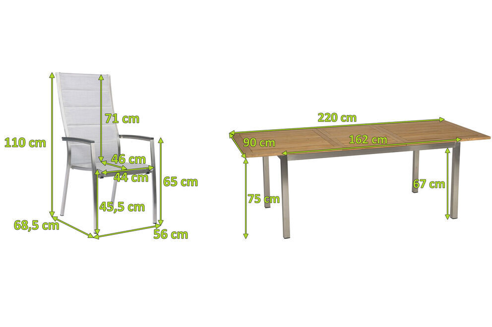 Diese Garnitur wird Ihnen aufgrund der strapazierfähigen Materialien und der hochwertigen Verarbeitung ein langlebiger Begleiter im Garten sein, der Ihnen viele Sommer Freude bereiten wird.