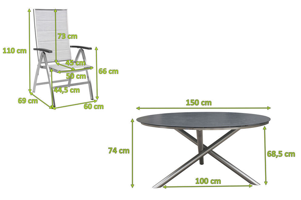 Diese Garnitur wird Ihnen aufgrund der strapazierfähigen Materialien und der hochwertigen Verarbeitung ein langlebiger Begleiter im Garten sein, der Ihnen viele Sommer Freude bereiten wird.