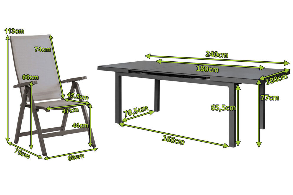 Mit dieser Esstischgruppe kommen Sie voll auf Ihre Kosten. Sie erhalten hochwertige Gartenmöbel von STERN und OUTFLEXX® in einem exklusiven Set. Ein eleganter Premium Ausziehtisch und 8 Klappsessel sorgen für ein exzellentes Sitzerlebnis. Genießen Sie Ihr einladendes Wohn- und Esszimmer im Garten in vollen Zügen. Die hochwertige Qualität, der erstklassige Komfort und das schicke Design wird Sie überzeugen.