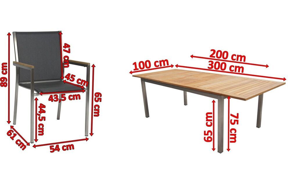 1x OUTFLEXX® Ausziehtisch, Edelstahl/Teakholz, ca. 200/300 x 100 x 75-77 cm
