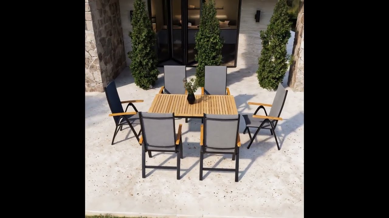 Die VILLANA Garten-Essgruppe vereint praktische Funktionen mit modernem Design. Genießen Sie Komfort und Stil in Ihrem Außenbereich und schaffen Sie unvergessliche Momente mit Familie und Freunden. Bestellen Sie jetzt und bringen Sie neuen Glanz in Ihren Garten!