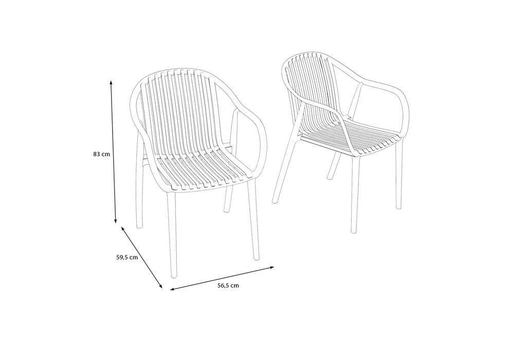 Die Maße der Sessel betragen ca. 56,5 cm in der Breite, ca. 59,5 cm in der Tiefe und ca. 83 cm in der Höhe. Die Sitzhöhe liegt bei ca. 45 cm, die Sitzbreite und Sitztiefe jeweils bei ca. 42 cm. Mit einer Rückenlehnenhöhe von ca. 42 cm (gemessen von der Sitzfläche) sowie einer Armlehnenhöhe von ca. 68 cm bieten die Stühle ein komfortables und ausgewogenes Sitzgefühl. Trotz ihrer robusten Eigenschaften sind die Sessel leicht genug, um flexibel umgestellt zu werden – perfekt für gesellige Anlässe oder eine spontane Sitzgruppen-Neugestaltung.