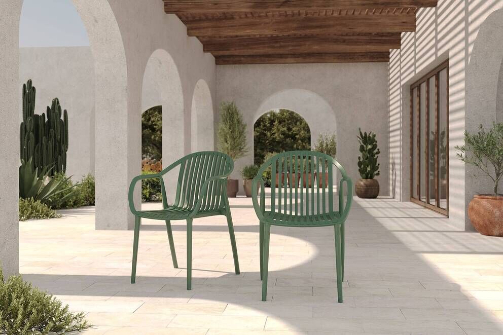 Mit dem VILLANA Pico Curve Stapelsessel 2er-Set investierst du in stilvolle und zugleich praktische Gartenstühle, die deine Außenbereiche verschönern und dir gleichzeitig ein komfortables, langlebiges Sitzmöbel bieten. Das attraktive Design in pestogrün, die witterungsbeständigen Eigenschaften und die platzsparende Stapelfunktion machen diese Sessel zu einer beliebten Wahl für moderne Outdoorbereiche.