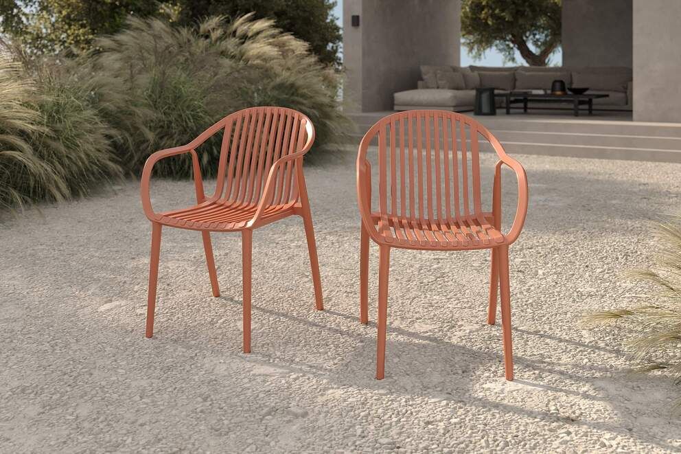 Die VILLANA Pico Curve Stapelsessel im praktischen 2er-Set verbinden modernes Design, hohen Sitzkomfort und langlebige Materialien zu einer Gartenmöbel-Lösung, die jeden Außenbereich aufwertet. Ob Terrasse, Balkon oder Garten – diese formschönen Kunststoffsessel bieten eine einladende Sitzgelegenheit für entspannte Momente im Freien. Mit ihrem harmonischen ziegelrotton und der klar strukturierten Linienführung fügen sie sich mühelos in unterschiedlichste Außenbereiche ein und wirken dabei leicht, modern und unaufdringlich.